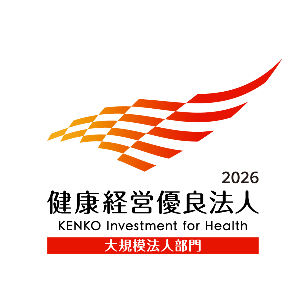 2026年3月、従業員の健康管理を経営的な考え、戦略的に実践する「健康経営」の取組みが優良であると認められ、経済産業省から「健康経営優良法人2026(大規模法人部門)」の認定を受けました。